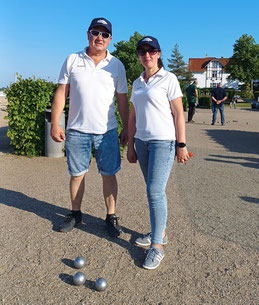 Gut lief es auch für das Geest-Bouler-Team Sandra Fernendes und Norbert Lehmann bei der Norddeutschen Landesmeisterschaft Doublette des Pétanque Verbandes Nord in Travemünde zu der 74 Teams angetreten waren. Sandra und Norbert belegten am Ende einen hervorragenden 4. Platz mit fünf gewonnenen Spielen. Nur in einem Spiel, gegen Paul Loth und Matthias Lafrenz von der Heider Rinds-Boule Union, mussten sich die beiden Breklumer knapp mit 11:13 geschlagen geben. Herzlichen Glückwunsch zu diesem Erfolg!