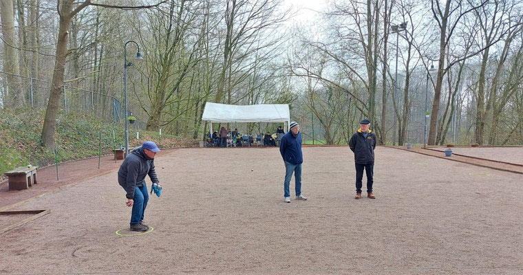 Obwohl in Breklum auf dem eigenen Boulodrome an diesem Tag das 97. Chapeau-Turnier stattfand und in Viöl das Frühlings-Turnier waren drei Doubletten-Teams der Geest-Bouler zum Frühlings-Turnier nach Oelixdorf angereist. Linda + Thomas Albertsen, Sandra Fernandes + Norbert Lehmann und Hannes Petersen + Manfred Habenicht.