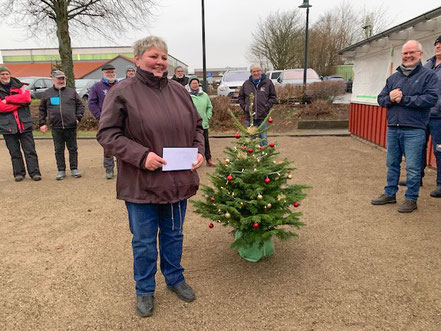 Gewinnerin des Turniers und damit auch des festlich geschmückten Tannenbaums (siehe Foto) wurde Ingrid Matthiesen von den Boule-Terriern Viöl.