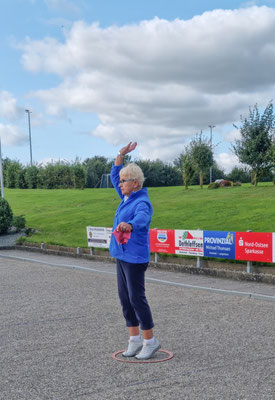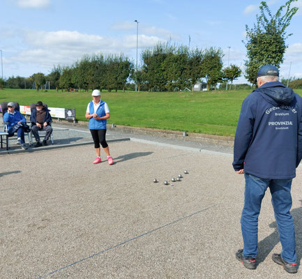 Beim 2. Halbfinalspiel wurde die Zielkugel in den ersten drei Aufnahmen jedes Mal ins Aus geschossen. So stand es hier immer noch 0:0 als es im ersten Halbfinale bereits 6:1 stand. Spannend verliefen die folgenden Aufnahmen, doch das Ergebnis war eindeutig. Otto + Manfred T. gewannen gegen Inga + Claas mit 13:6.