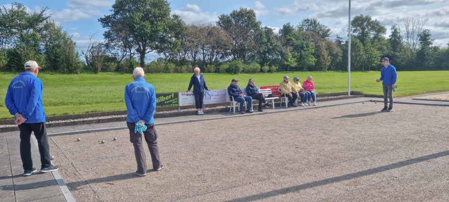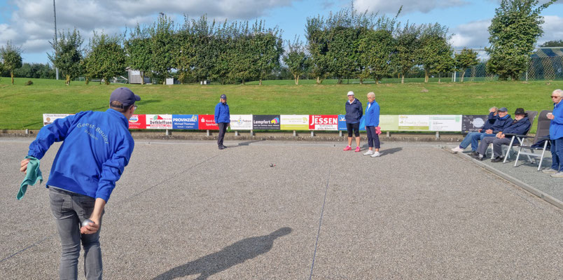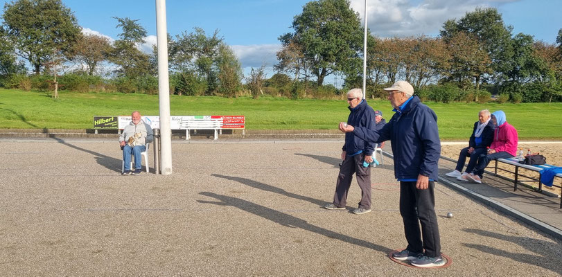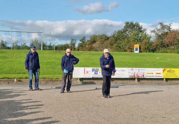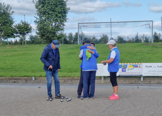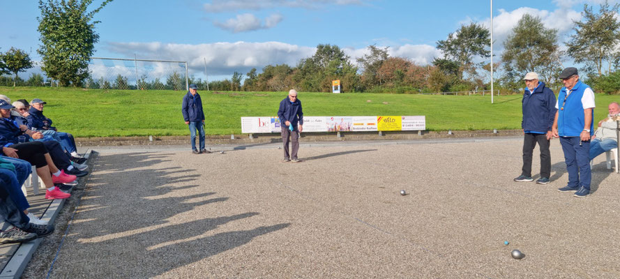 Bernd-Rito war in hervorragender Tireur-Form und Horst zeigte sein bestes Spiel beim Legen der Kugeln. Otto, dessen rechte Schulter verletzt war und er gezwungen war mit der linken Hand zu legen, und Manfred T. hatten dem so gut wie nichts entgegenzusetzen.