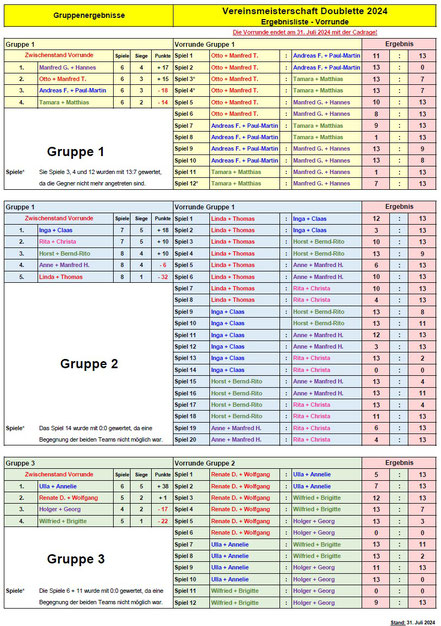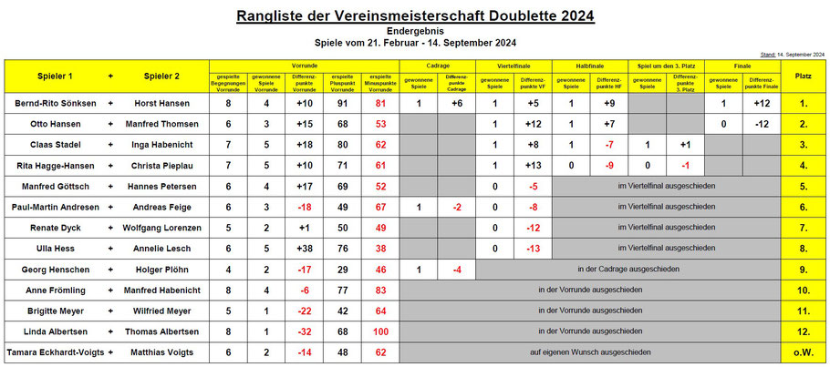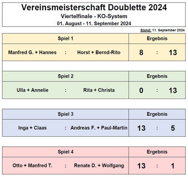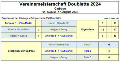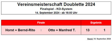 Nachfolgend die Ergebnisse der Vereinsmeisterschaft Doublette 2024 im Einzelnen: