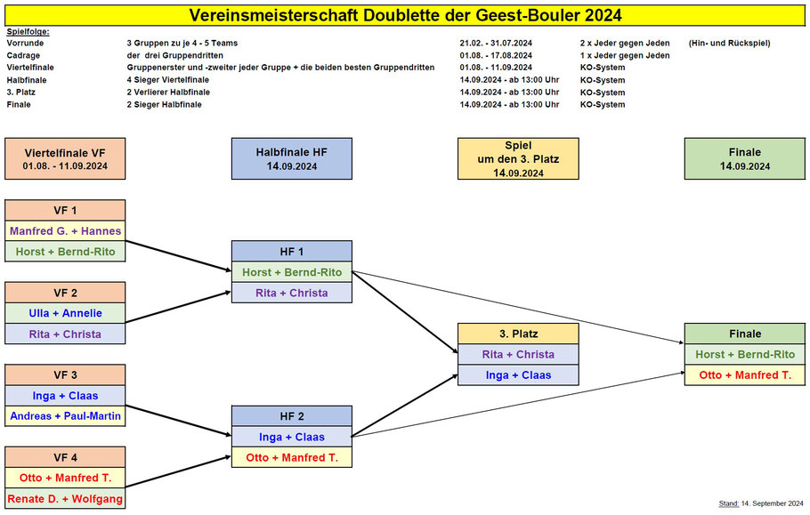 Die beiden Halbfinalspiele, das Spiel um den 3. Platz und das Finalspiel fanden als traditionelles Saisonabschlussturnier der Geest-Bouler am 14. September 2024 statt.