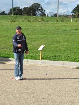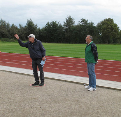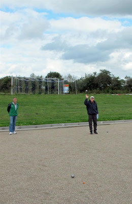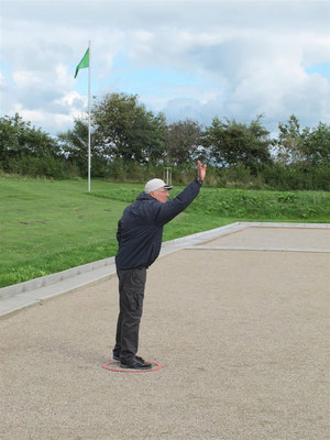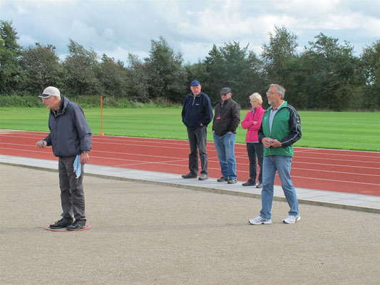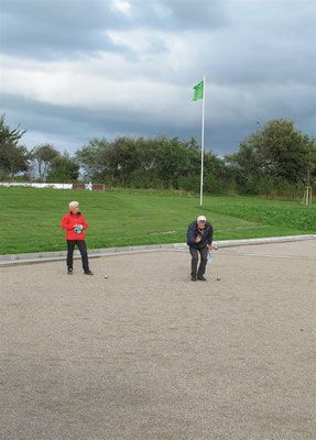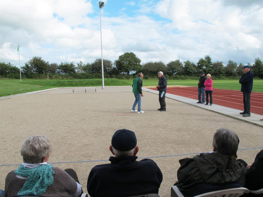 Im Spiel um den 3. Platz trafen somit die beiden Verlierer, Ingeburg Muller und Manfred Thomsen, aufeinander. Das spannende Spiel, in dem Ingeburg Muller schnell in Führung ging, musste aufgrund eines starken Regenschauers für 15 Minuten unterbrochen werden. Aus dieser Pause kam Manfred Thomsen anscheinend gestärkt und mit viel Selbstvertrauen zurück, so dass der Punktevorsprung seiner Gegnerin von ihm rasch aufgeholt wurde. Kurze Zeit später ging er sogar in Führung. Doch Ingeburg Muller kämpfte und konnte ihrerseits wieder punkten und das Spiel mit 13:12 Punkten zum Schluss doch noch für sich entscheiden. Die zahlreichen Zuschauer feuerten ihre Favoriten immer wieder an und spendeten beiden Spielern für ihre gelungenen Aktionen viel Beifall.
